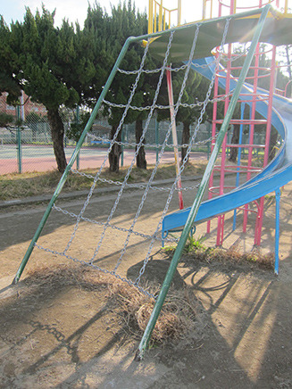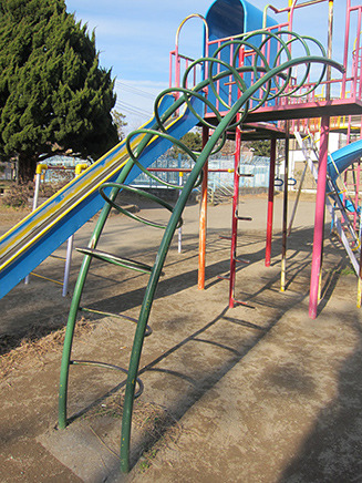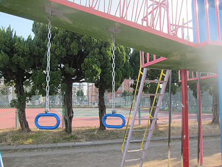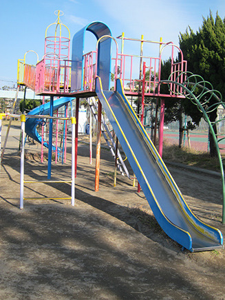 - 区画整理之碑とテニスコートの間にある遊具広場。