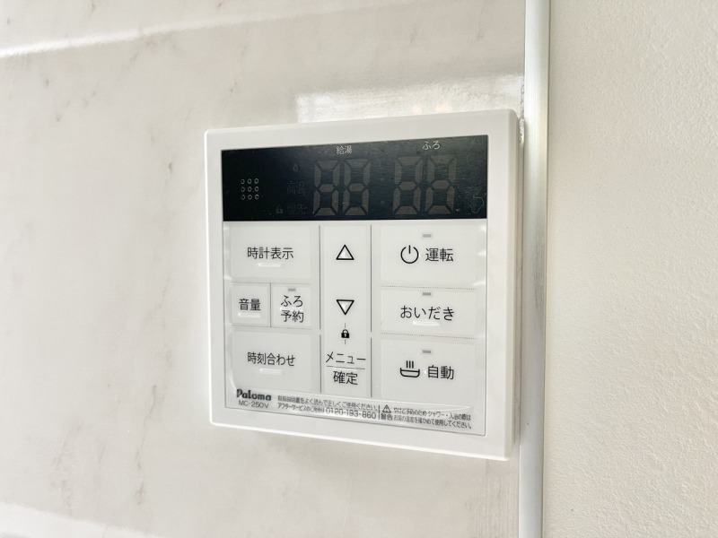 キッチンの壁にはユニットバスのコントローラーが設置されています! お湯張りや追焚き操作もキッチンから操作でき いつでも温かいお風呂に入ることができます!
