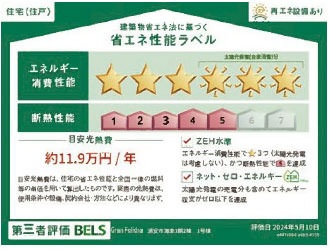 | 省エネ性能表示 | 再エネ設備:あり エネルギー消費性能:★★★★★★~★★★★★★ 断熱性能:5段階~5段階 目安光熱費:約11.9万円/年~約12万円/年 |