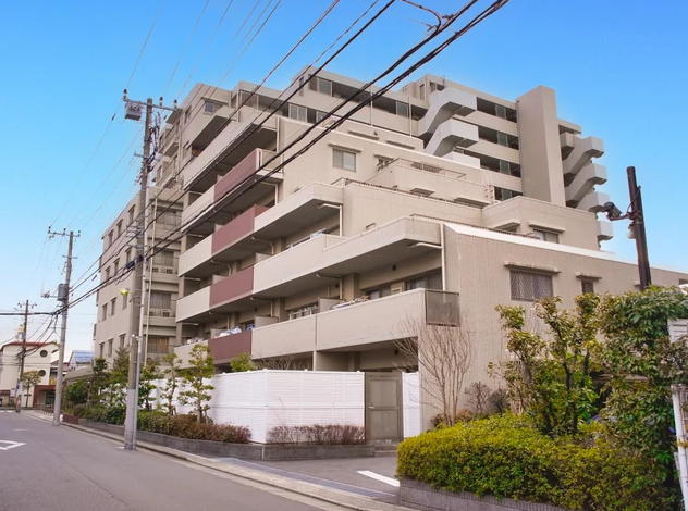 周辺は戸建住宅やマンションが建ち並ぶ閑静な住宅地で、JR総武線「下総中山」駅徒歩17分も利用可能で通勤・通学にも便利な立地。敷地内は常に清潔に保たれ植栽の手入れも行き届いていて管理体制の良さがうかがえます。