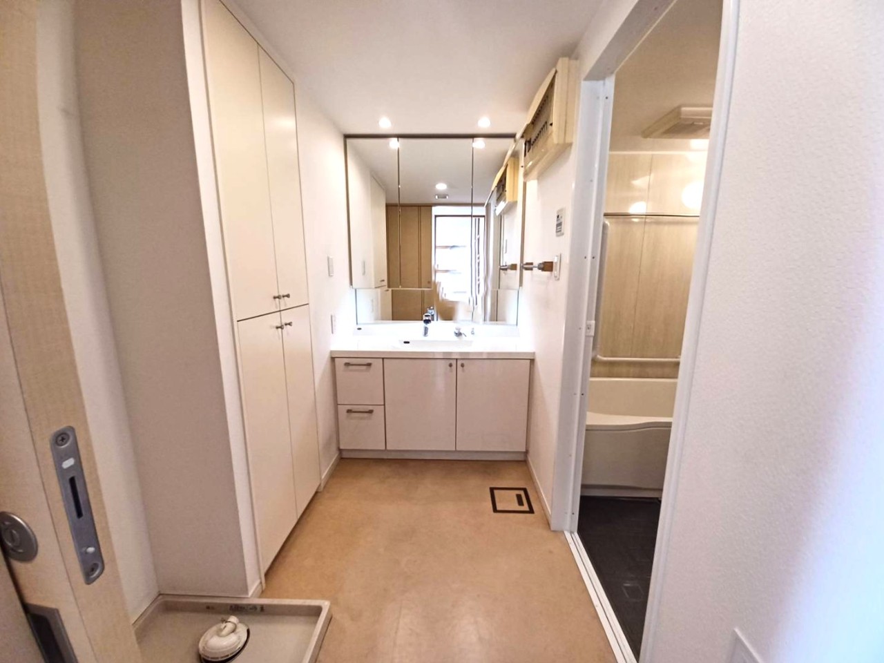 朝の身支度に便利なシャンプードレッサーはとっても便利です!シンク下の収納でアメニティ類のストックもバッチリ!