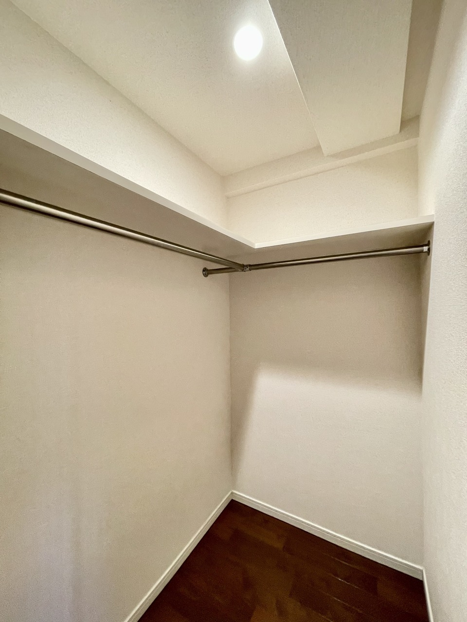 広々としたウォークインクローゼット! ゴルフバックや趣味の物など、まとめて収納できるのでお部屋を有効に使えますね! たくさんのお洋服やバッグを見やすく・取り出しやすく、慌ただしい朝もコーディネートを決めやすくなります。スーツケース等の大きな荷物の保管にも便利です。
