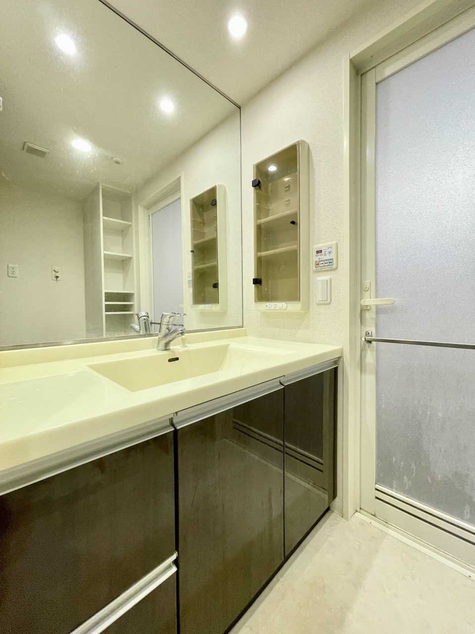朝の身支度に便利なシャンプードレッサーはとっても便利です!シンク下の収納でアメニティ類のストックもバッチリ!