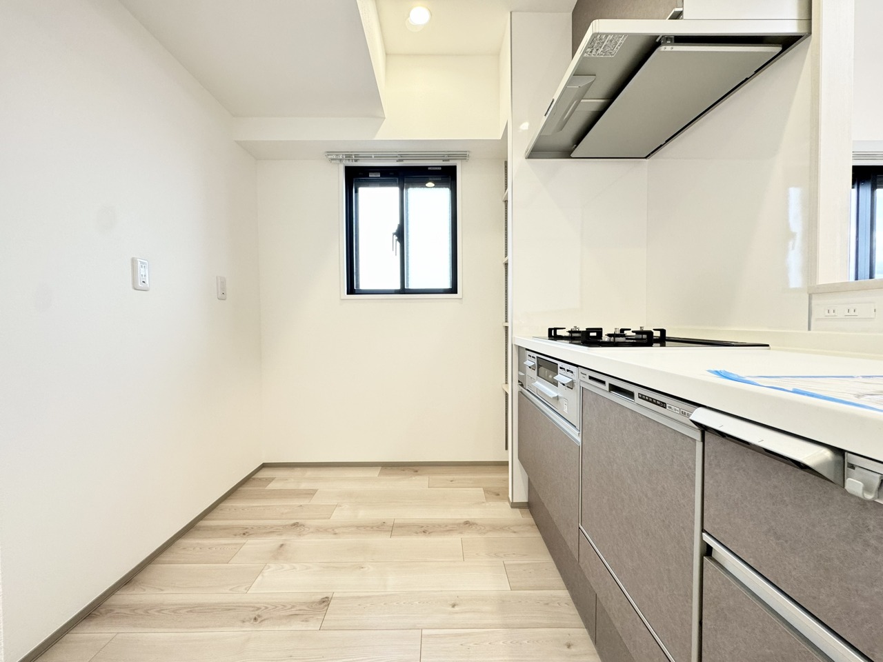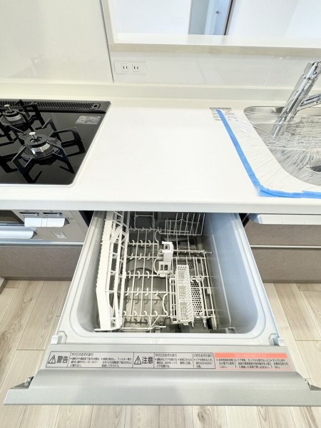 家事の時短に効果大の食洗器付き。高温でパワフルに洗い、温風乾燥します。手洗いよりも節水・節約が可能です。 一度使うと手放せないですよ!