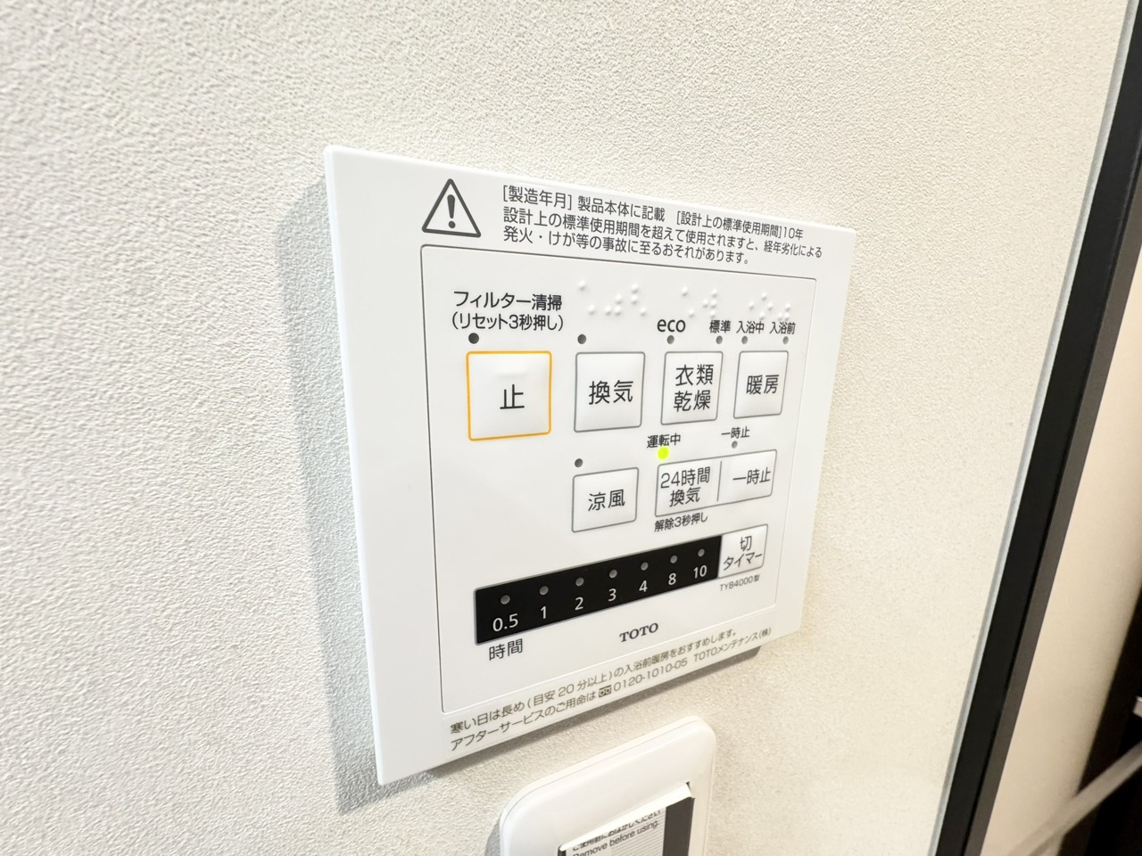 カビの発生も抑制出来ます!また暖房・涼風機能も付いているので冬はいつでも暖かく、夏は涼しく、雨の日でも洗濯物が乾くのも良いですよね!梅雨の時期など重宝します。