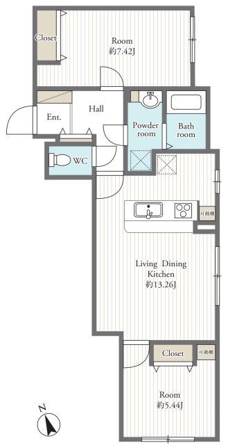 | 間取 | 2LDK (LDK13.26帖、洋室5.44帖、洋室7.42帖) | ||