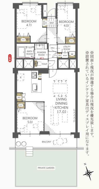 | 間取 | 3LDK (LDK17.0帖、洋室5.0帖、洋室4.0帖、洋室4.7帖) | ||
