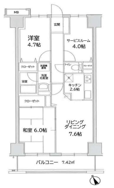 | バルコニー面積 | 7.42m² 南西向き | ||