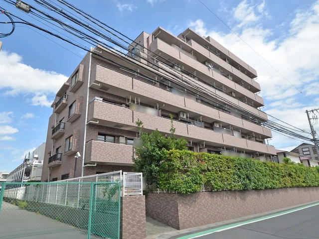 マンションや住宅の多い閑静な住宅街にあるブラウンのタイル貼りの外観のマンションでエントランスは安心のオートロック式、便利な宅配BOXも設置されています。