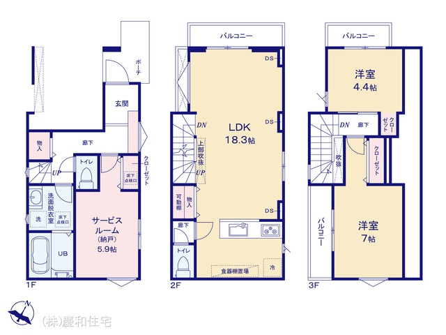 - ※完成予想図はいずれも外構、植栽、外観等実際のものとは多少異なることがあります。