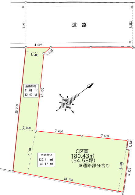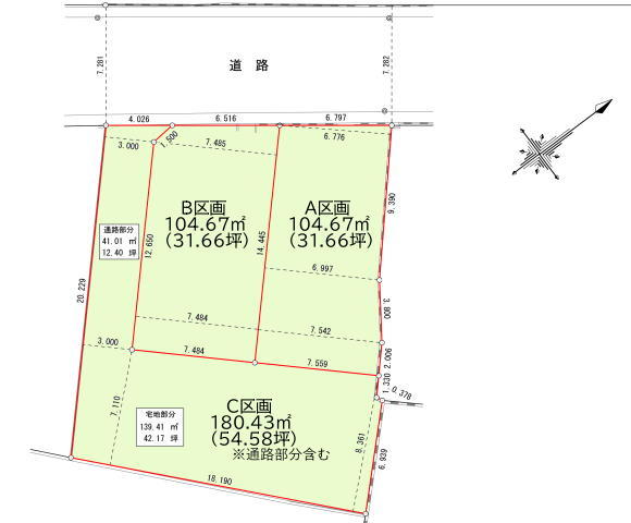 | 土地面積 | 104.67m² ~ 180.43m² 公簿 | ||