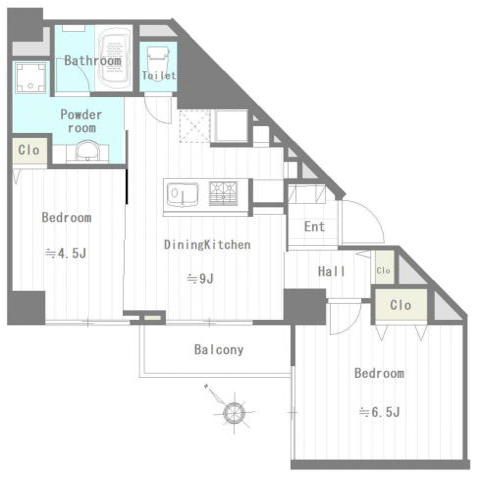 | 間取 | 2DK (DK9帖、洋室4.5帖、洋室6.5帖) | ||