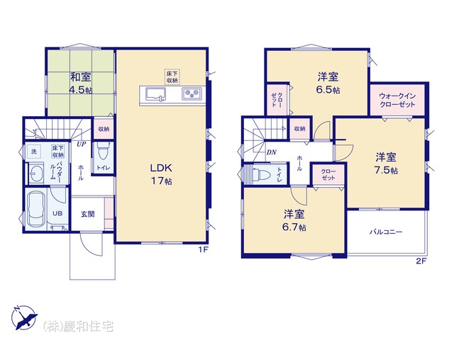 LDK17帖のゆとり4LDK設計。ウォークインクローゼット付きで収納スペースも豊富です。