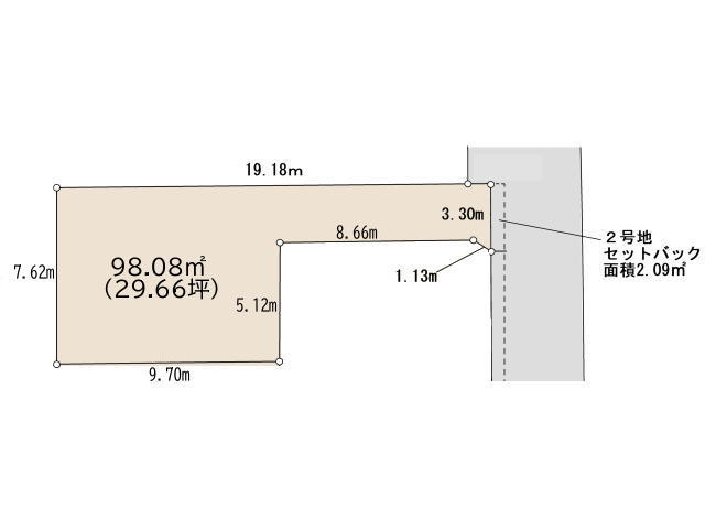 2号地 土地面積99.50m2(30.09坪) お好みの間取りで建築できます。