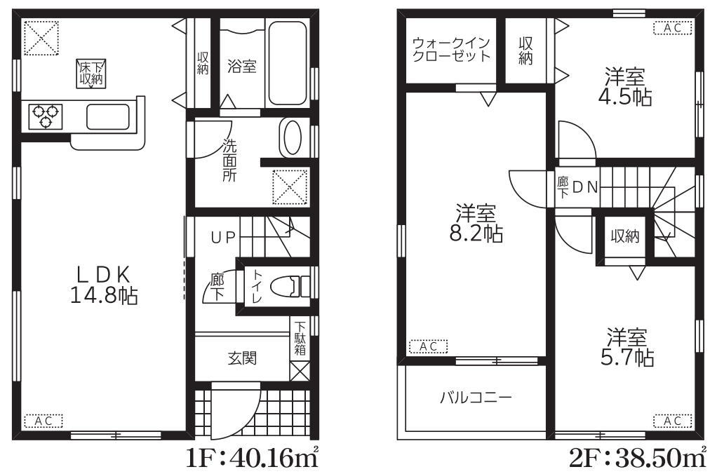 | 間取 | 3LDK + WIC (LDK14.8帖、洋室4.5帖、洋室5.7帖、洋室8.2帖) | ||