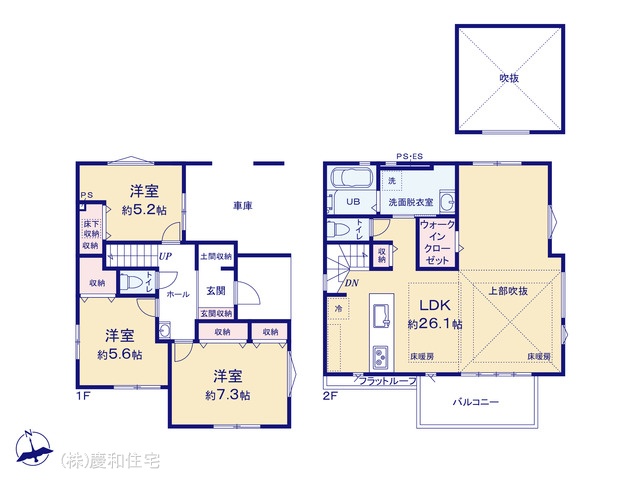| 設備 | 公営水道、本下水、都市ガス 公共下水、24時間換気システム、吹き抜け、シックハウス対策、バルコニー、フローリング、火災警報器(報知機) |