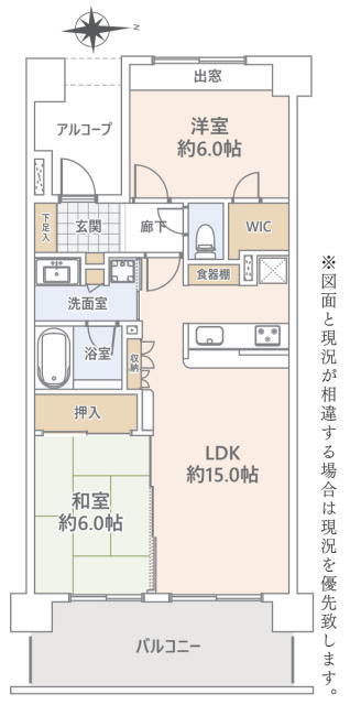 | 間取 | 2LDK + WIC (LDK15.0帖、和室6.0帖、洋室6.0帖) | ||