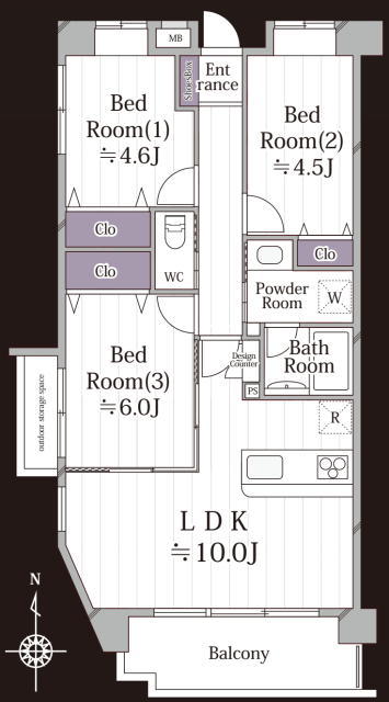 | 間取 | 3LDK + 専用庭 (LDK10.0帖、洋室4.6帖、洋室4.5帖、洋室6.0帖) | ||