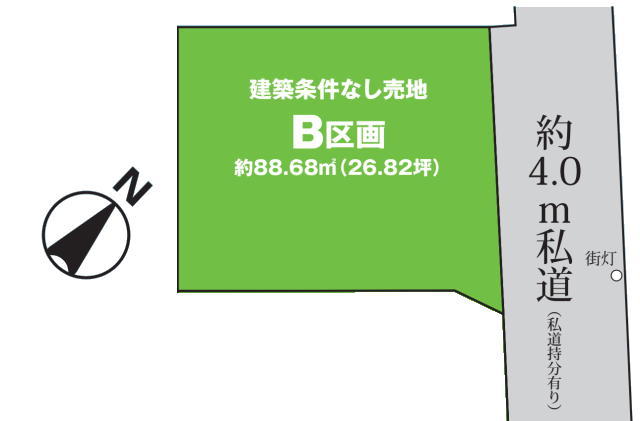 | 権利種類 | 所有権 | 接道 | 北東側4M私道に8.6M接道 |