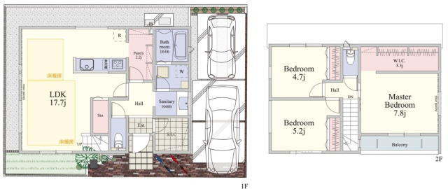 | 間取 | 3LDK + WIC+パントリー (LDK17.7帖、洋室4.7帖、洋室5.2帖、洋室7.8帖) | ||