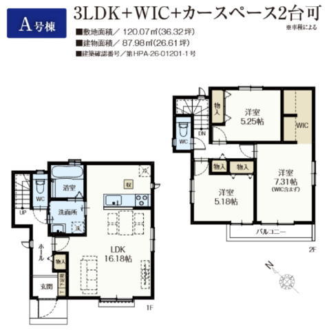 | 建築確認番号 | 第HPA-26-01201-1号 | 駐車スペース | 2台可 |
