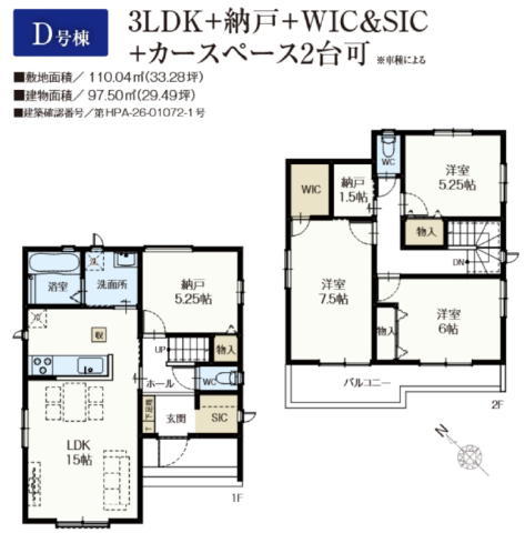 | 建築確認番号 | 第HPA-26-01072-1号 | 駐車スペース | 2台可 |
