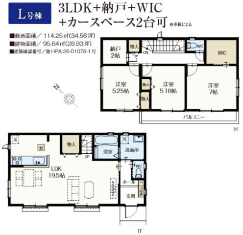 | 建築確認番号 | 第HPA-26-01078-1号 | 駐車スペース | 2台可 |