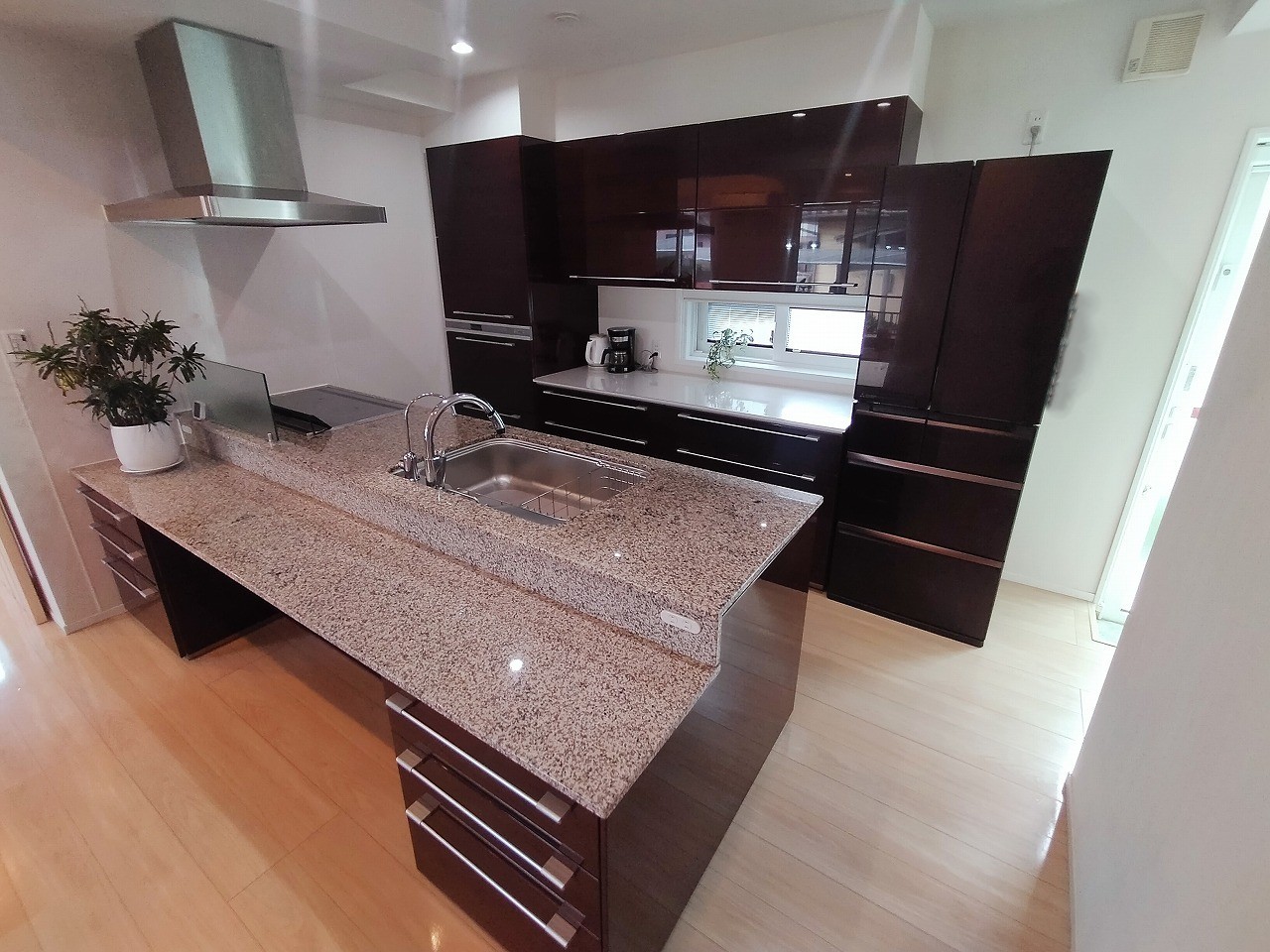 お掃除のしやすいフラットキッチンです。対面式なので、お料理をしながらご家族とのコミュニケーションも取れますね!