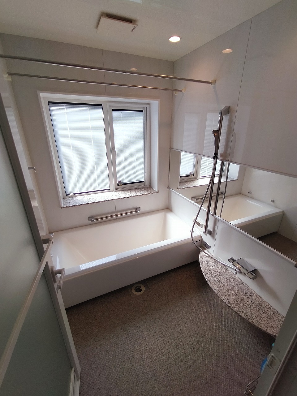 入浴後にしっかり換気も取れる大きな窓のある浴室です。