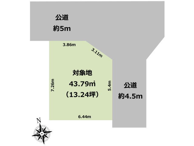 | 権利種類 | 所有権 | 接道 | 東側4.5M公道に接道 北側5M公道に接道 |