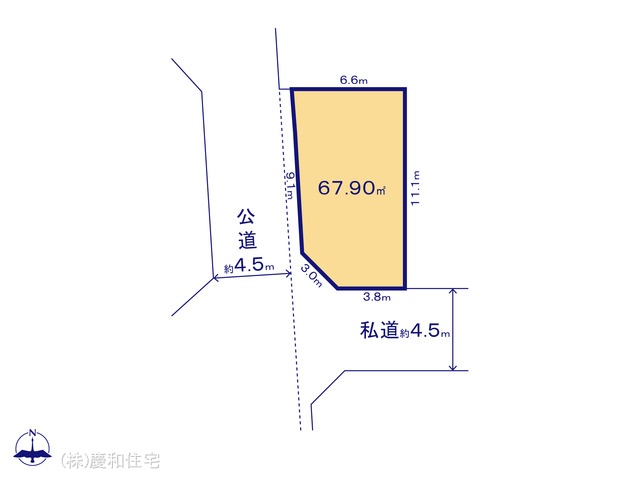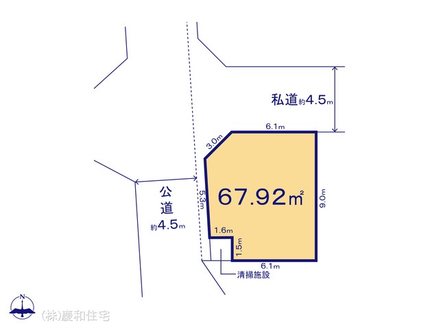 | 土地面積 | 67.89m² ~ 67.92m² 実測 (私道140.34m²~140.34m²別に有) | ||