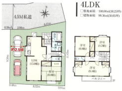 | 権利種類 | 所有権 | 接道 | 北側4.5M私道に9.7M接道 |