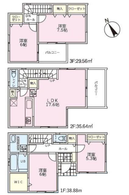 | 間取 | 4LDK + WIC (LDK17.6帖、洋室6.0帖、洋室5.3帖、洋室6.0帖、洋室7.5帖) | ||
