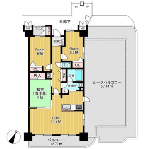 | バルコニー面積 | 12.77m² 南向き (ルーフバルコニー57.14m2) | ||