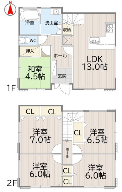 | 間取 | 5LDK (LDK13.0帖、和室4.5帖、洋室6.0帖、洋室6.0帖、洋室6.5帖、洋室7.0帖) | ||