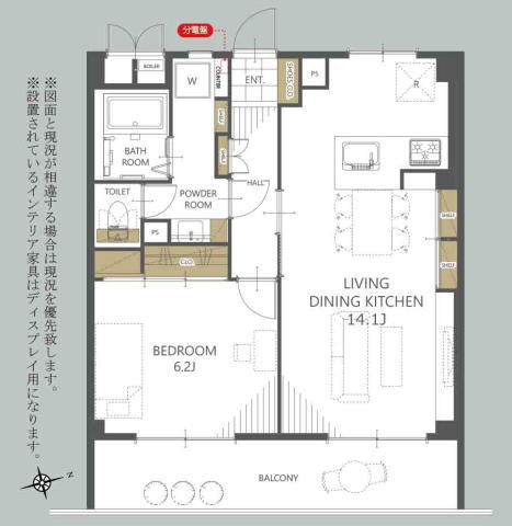 | 間取 | 1LDK (洋室6.2帖、LDK14.1帖) | ||