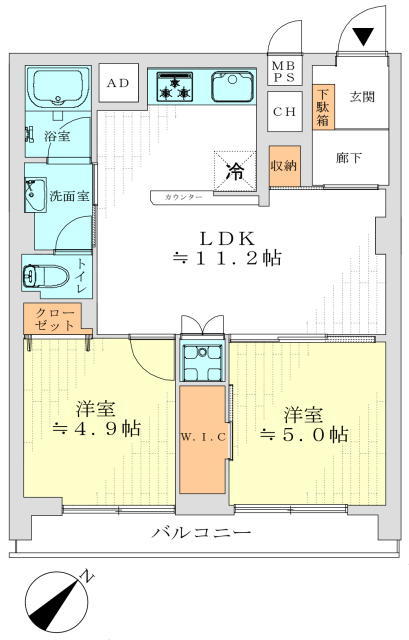 | バルコニー面積 | 南東向き (バルコニー面積不明) | ||