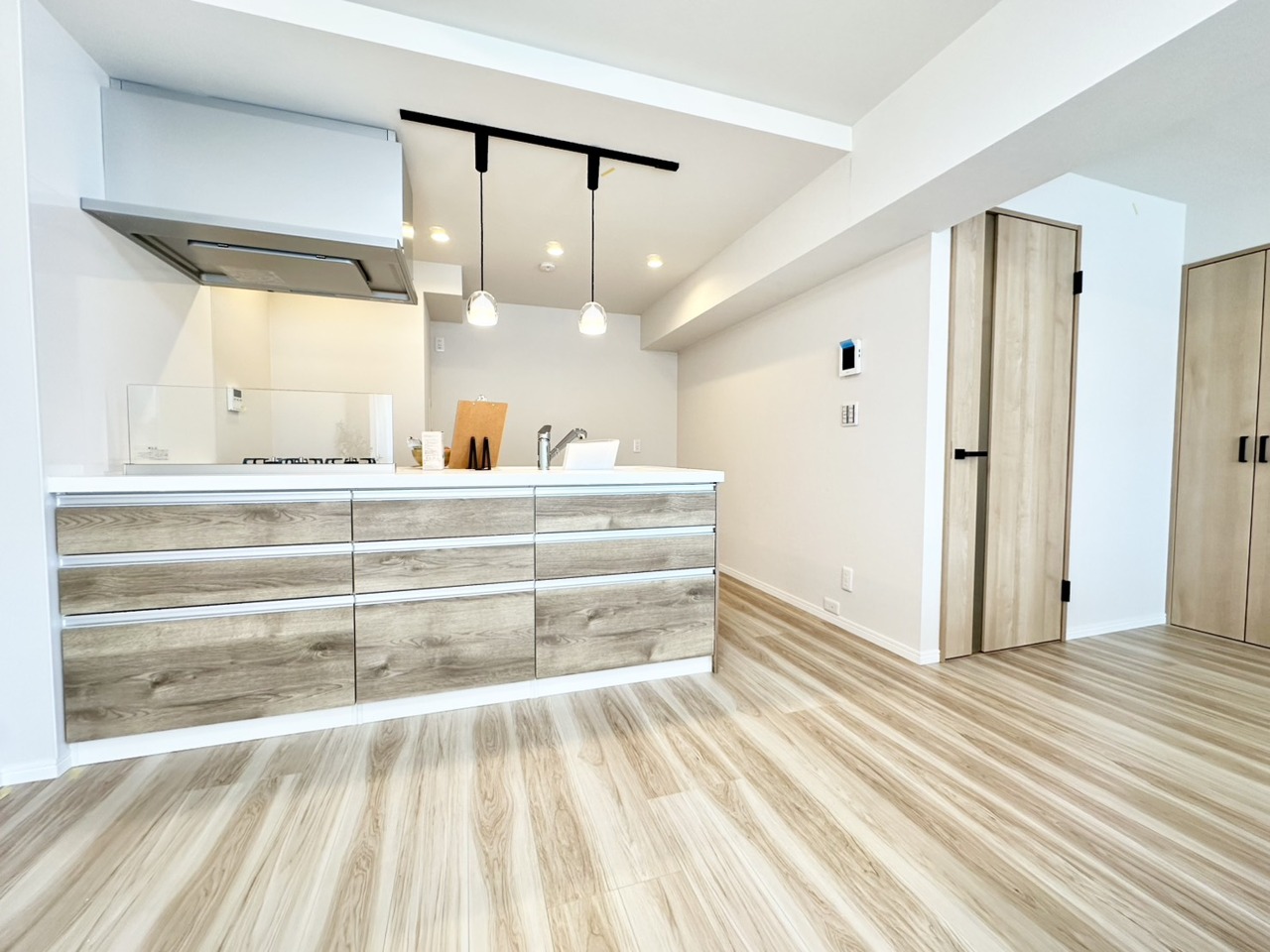 キッチンと統一感のある家具など設置し、お洒落な空間に!