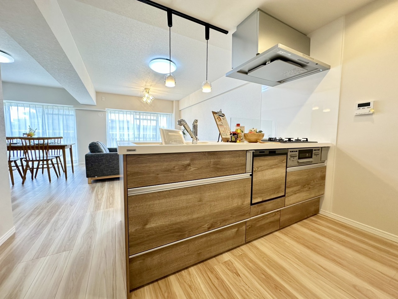 キッチンスペースは明るい空間に!使い手目線でポイントを押さえ、家事が楽しく進むキッチン。細部にまで施された上質なアイテムが快適な日常生活を叶えてくれます。お料理もしやすく、お子様の様子を見ながら家事も出来ます!