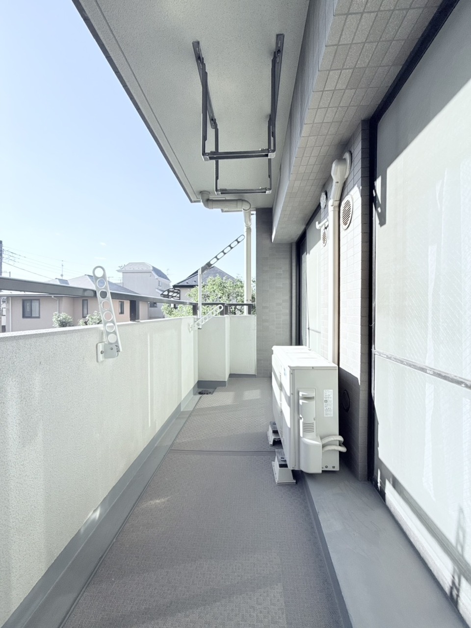 広々としたバルコニーがあり、たくさんの洗濯物を干すことができます! 日当たりが良く暖かいですよ~!