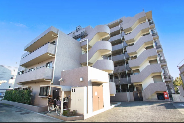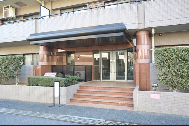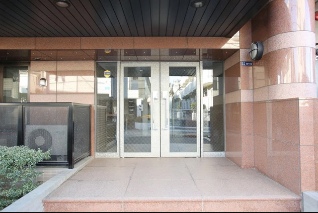 薄いベージュのタイル張りで明るい印象の外観のマンションでエントランスはオートロック付きなので安心です。
