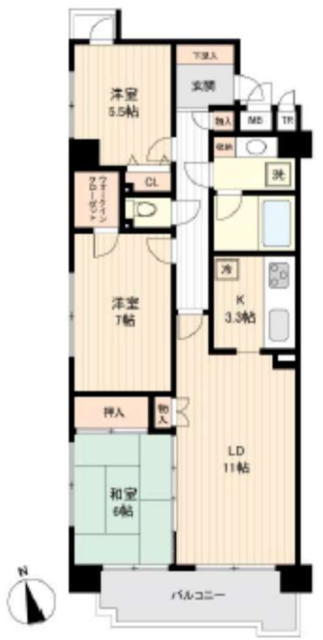 | 間取 | 3LDK + WIC (LDK11帖、洋室5.5帖、洋室7帖、和室6帖) | ||