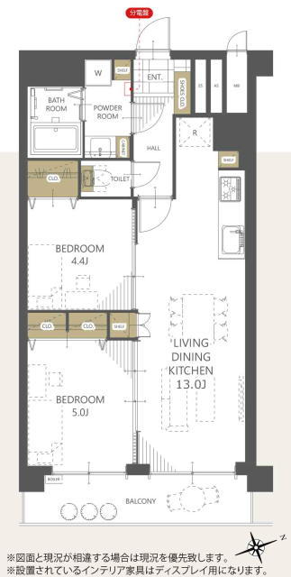 | 間取 | 2LDK (洋室5帖、洋室4.4帖、LDK13帖) | ||