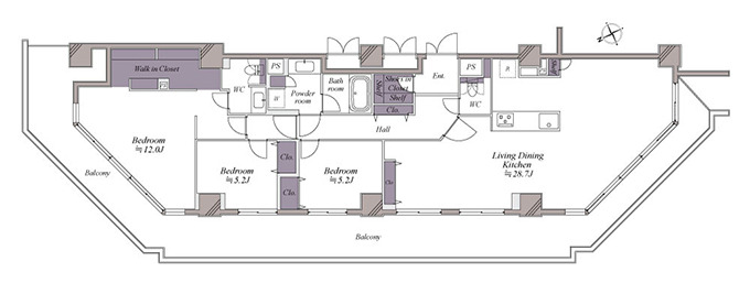 | 専有面積 | 124.09m² (壁芯) | ||
