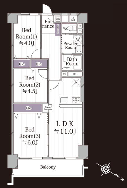 | 間取 | 3LDK (LDK11.0帖、洋室4.0帖、洋室4.5帖、洋室6.0帖) | ||