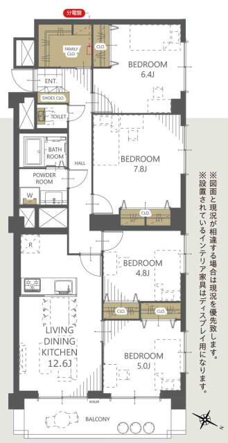 | 間取 | 4LDK (洋室7.8帖、洋室6.4帖、洋室5帖、洋室4.8帖、LDK12.6帖) | ||