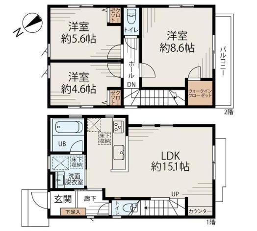 | 間取 | 3LDK (洋室8.6帖、洋室5.6帖、洋室4.6帖、LDK15.1帖) | ||