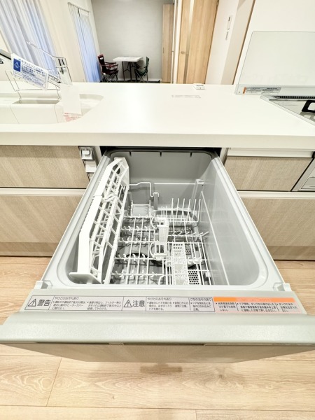 家事の時短に効果大の食洗器付き。高温でパワフルに洗い、温風乾燥します。手洗いよりも節水・節約が可能です。 一度使うと手放せないですよ!