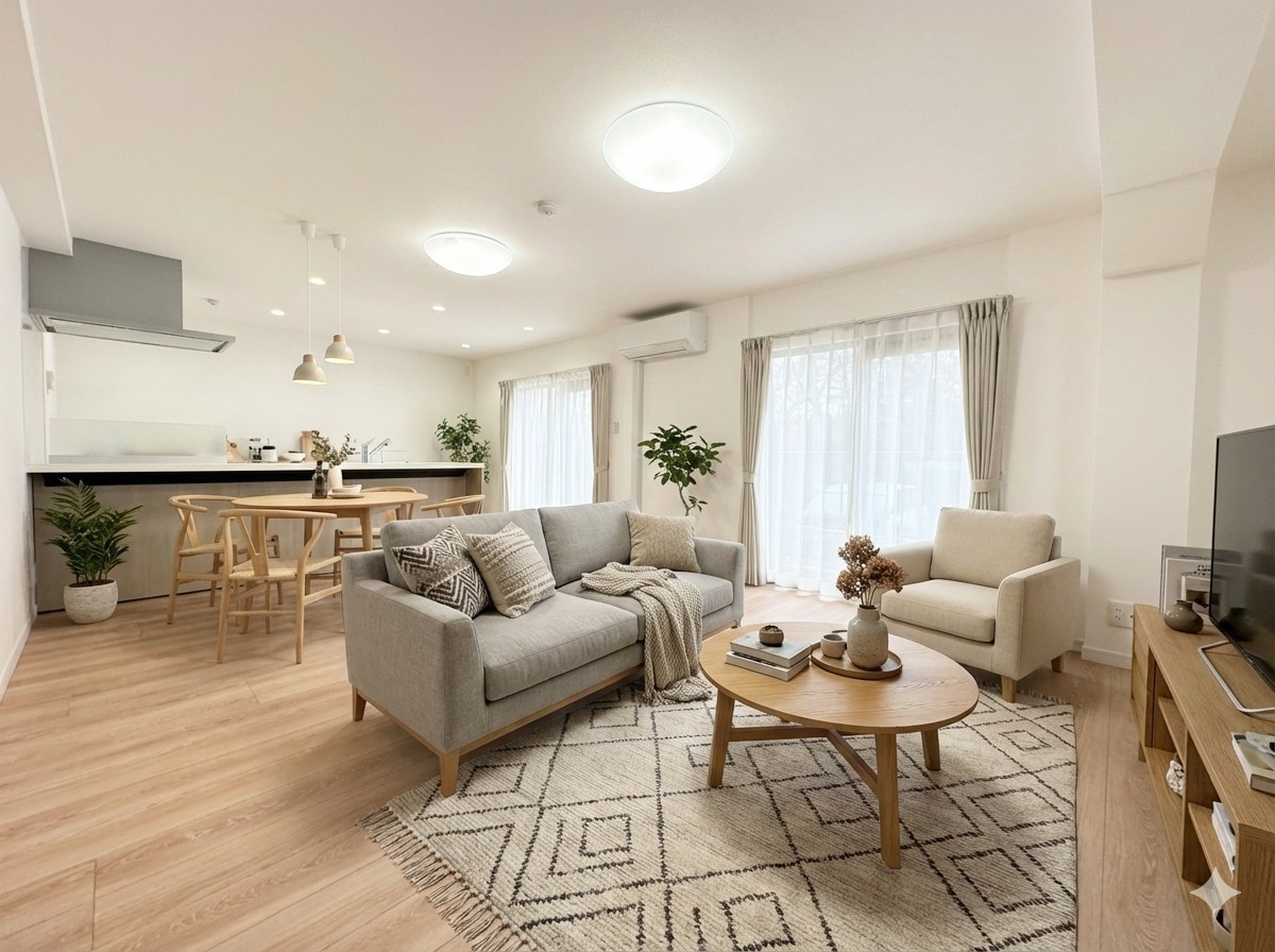 リノベーションマンションです! 休日はお陽さまの光がたっぷり差し込むぽかぽかリビングで過ごしませんか? ※家具はイメージです。