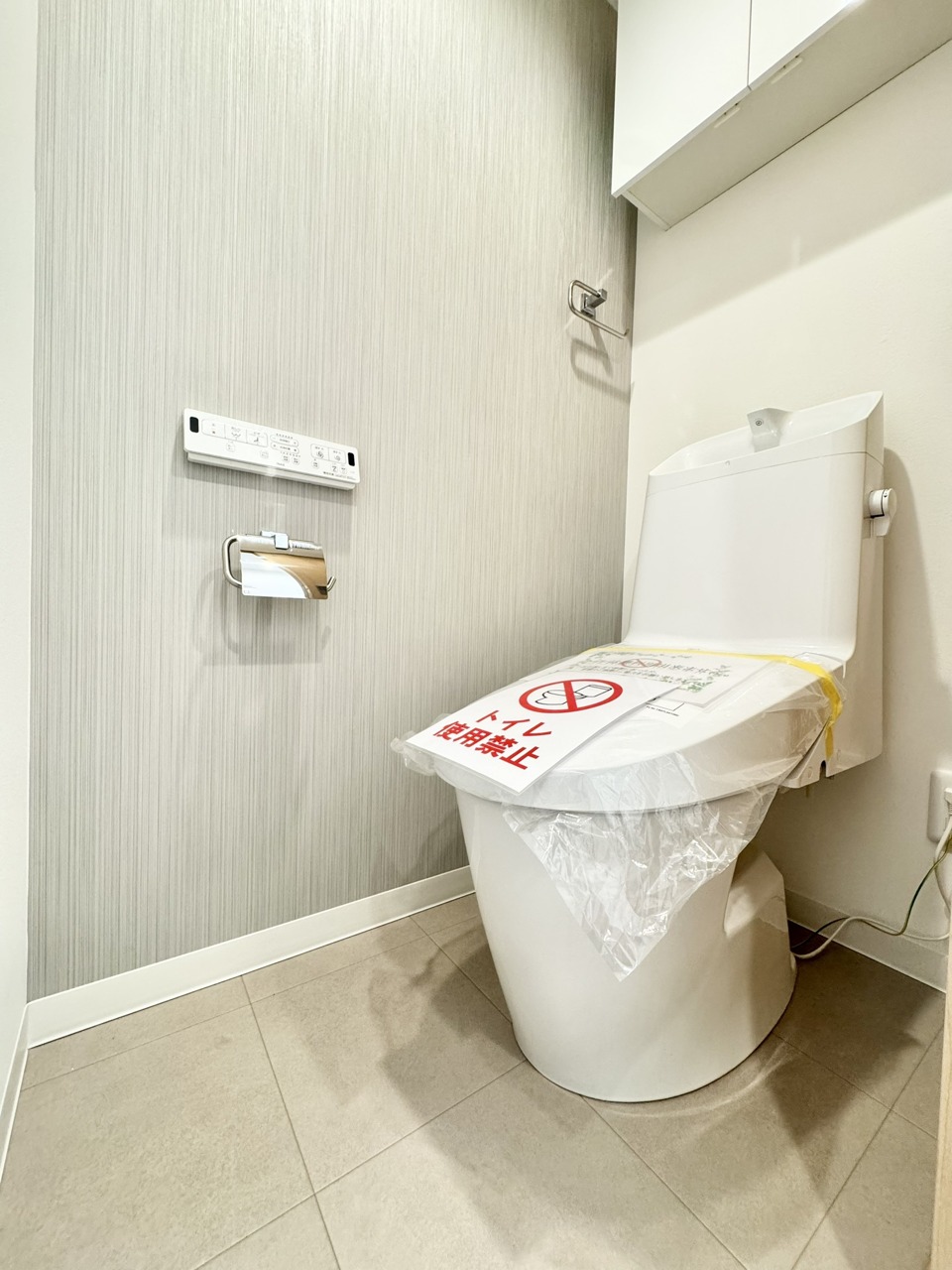 上部に収納棚があり、トイレットペーパーや掃除用具をスッキリ収納できます!